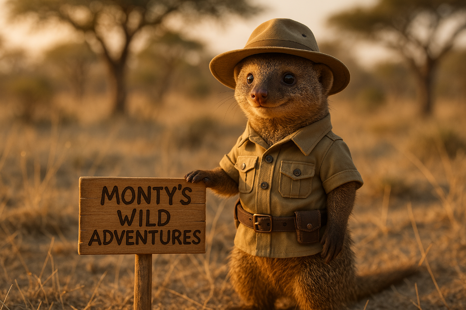 Meet Monty the mongoose — a curious, clever little explorer with a nose for adventure and a heart for the wild. Armed with his tiny GoPro and boundless energy, Monty takes us deep into the heart of nature, uncovering hidden wonders and sharing fascinating facts about the animals he encounters. Whether he’s tiptoeing past elephants, snorkeling with fish, or spying on hippos at the river, Monty brings the African wilderness to life with charm, wit, and a touch of mischief.